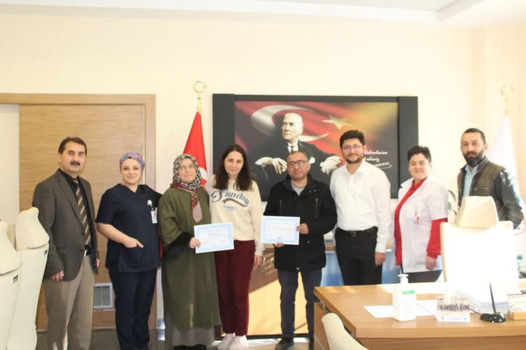 Diyabet okuluna katılan kişilere, gün sonunda belgelerini Hastane Başhekim Yardımcısı Oğuzhan BODUR, Sağlık Bakım Hizmetleri Müdürü Müge YILDIZ, İdari ve Mali İşler Müdürü Nezir MAVİ, Hastane Müdür Yardımcısı Murat SARAÇ, Dahiliye Uzmanı Esra BORA ve Diyabet Eğitim Hemşiresi Merve ASLAN teslim etti.