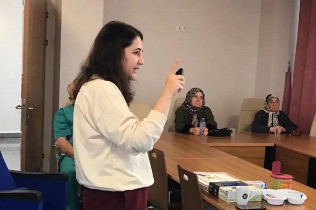 Eğitimde, hasta ve hasta yakınlarına, Dahiliye Uzmanı Esra BORA, Ortopedi ve Travmatoloji Uzmanı Seyyid İsa KESKİNKILIÇ, Eczacı Bensu AKÇALILI, Diyetisyen Özge İPEK, Sosyal Hizmet Uzmanı Makbule YILDIRIM, Psikolog Nurhan ARSLAN ve Diyabet Eğitim Hemşiresi Merve ASLAN tarafından bilgilendirmeler yapıldı.