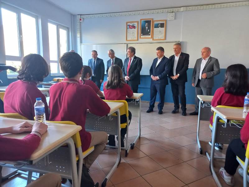HELVACI, “çalışmalarından dolayı Okul idaresine ve öğretmenlere teşekkür ederek” ziyaretini tamamladı.