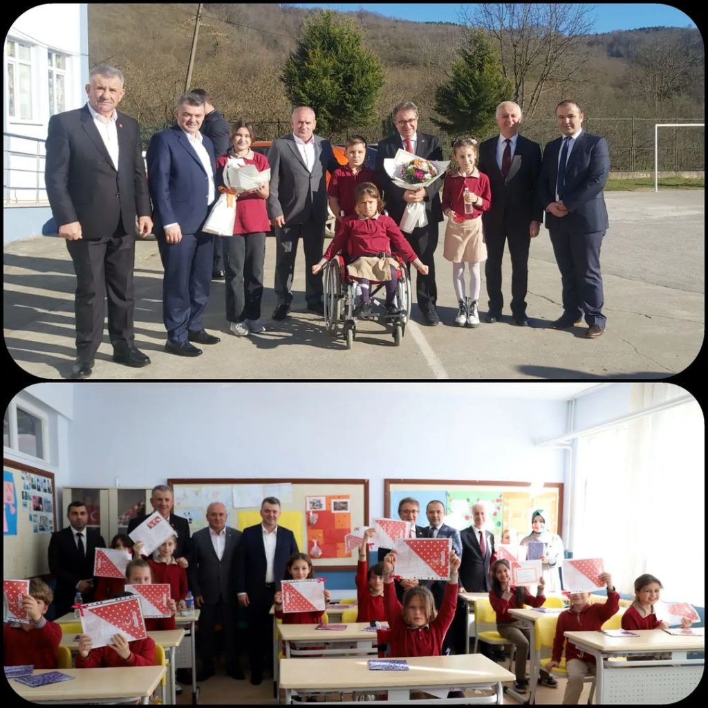 İlçe Kaymakamı Dr. Ahmet Naci HELVACI, Belediye Başkanı İshak SARI, İlçe Milli Eğitim Müdürü Çetin TURHAN, Kızılcık Mahallesi Muhtarı İsmail Hakkı TOPALOĞLU ve Şoförler Odası Başkanı Kerim UYAR, Kızılcık Ortaokulu‘ndaki öğrencilerin karne sevincine ortak oldular.