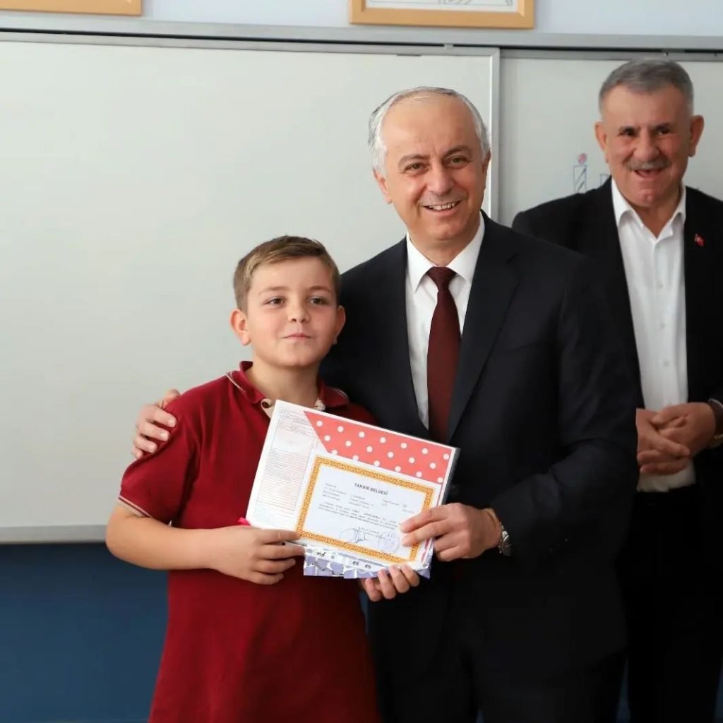 Törenin somunda, Kaymakam Ahmet Naci HELVACI tarafından, eğitim faaliyetlerine katkılarından dolayı, Şoförler ve Otomobilciler Odası Başkanı Kerim UYAR’a plaket takdim edildi.