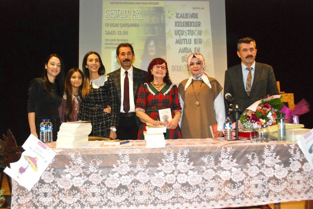 Sezi Eratik Ortaokulu Türkçe Öğretmeni Burcu AKSU ve Selva TAŞDEMİR‘in “Bir Yazar Bir Kitap Projesi” vesilesiyle, ilkokul ve ortaokul öğrencileri, “Çocuk Edebiyatı”nın kıymetli yazarlarından, Yazar Sevim AK ile bir araya geldi.