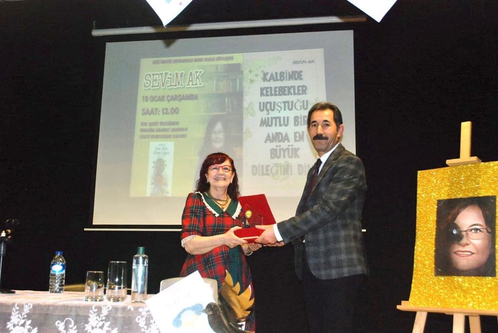 Programın sonunda Mehmet TAŞKIRAN, Sevim AK’a plaket takdim ederek teşekkür etti. Sezi Eratik Okulu Müdürü Erol CANTÜRK de yazara çiçek takdim ederken, söyleşiye katılan öğrenciler de Sevim AK için özel hazırlanan hediyeleri kendisine vererek mutluluklarını ifade ettiler.
