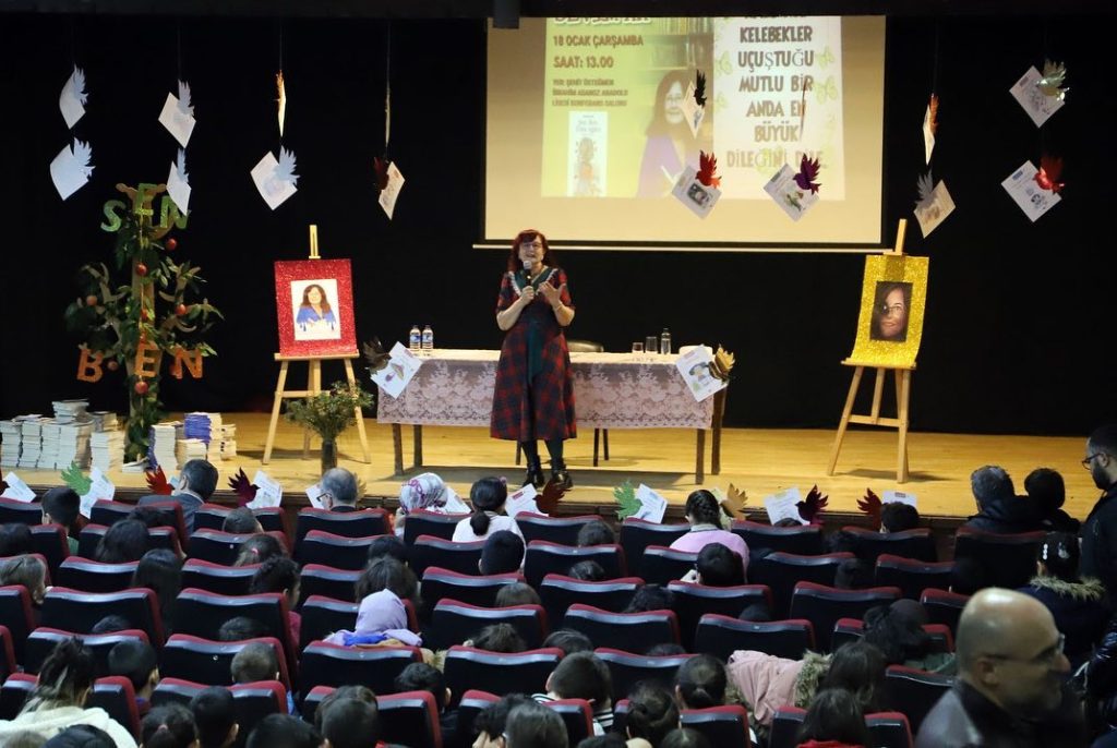 Şehit Üsteğmen İbrahim Abanoz Anadolu Lisesi Konferans salonunda Yazar Sevim AK söyleşisi vardı.