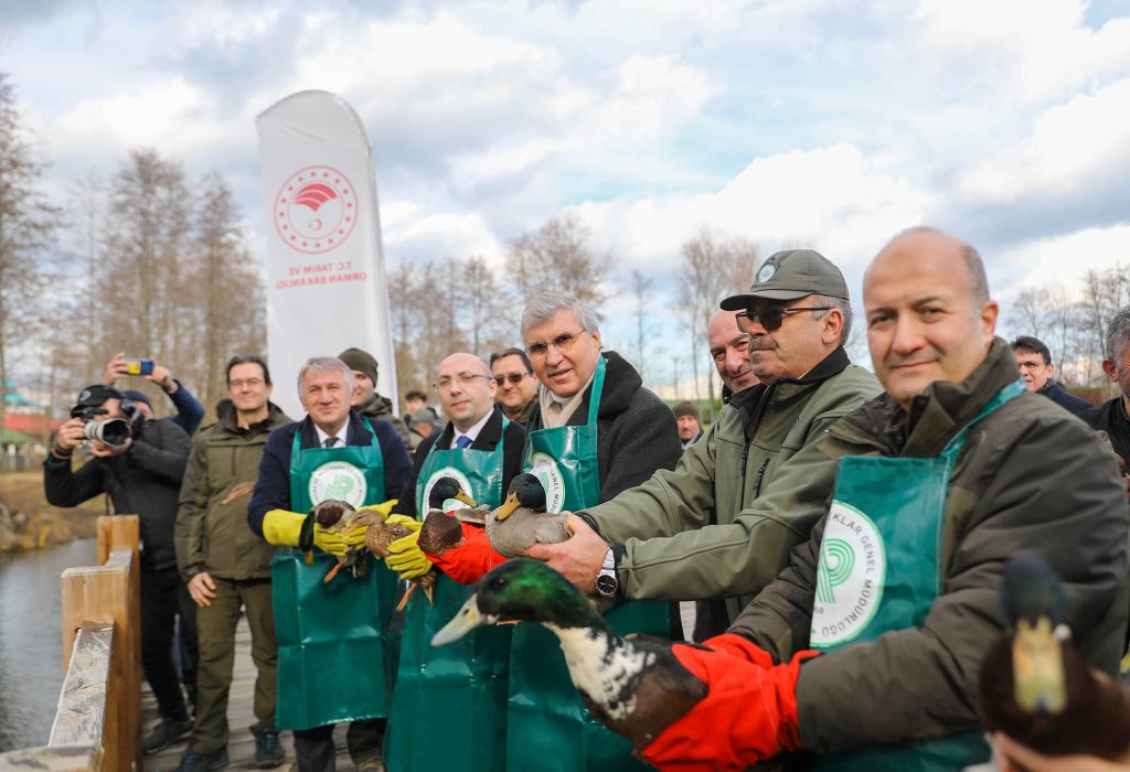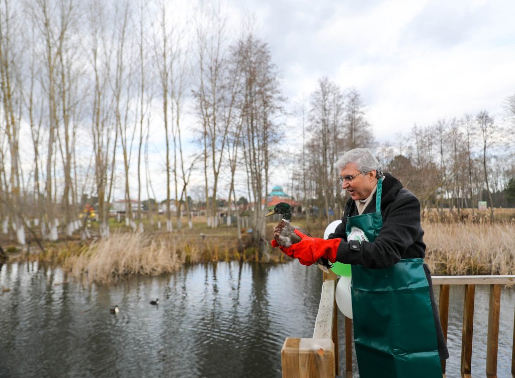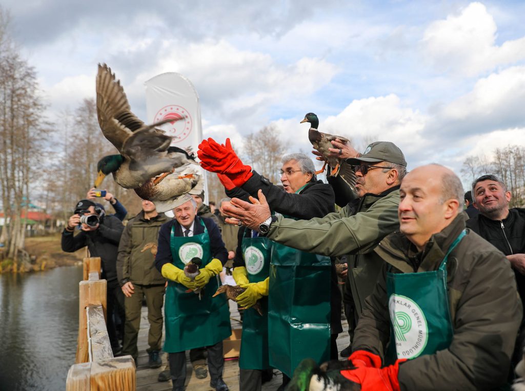 Başkan YÜCE ve protokol üyeleri, longozda yaralanmış ve tedavisi yapılmış ‘Yeşilbaş’ yaban ördeklerini doğaya saldı.