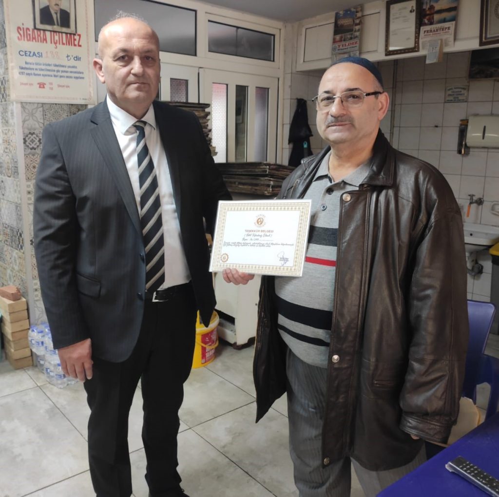 Deprem afeti sonrası Karasu’da misafir edilen depremzede ailelerin ekmek ihtiyaçlarının karşılanmasına gönüllü olarak katkı sağlayan fırıncılara “teşekkür belgesi” verildi.