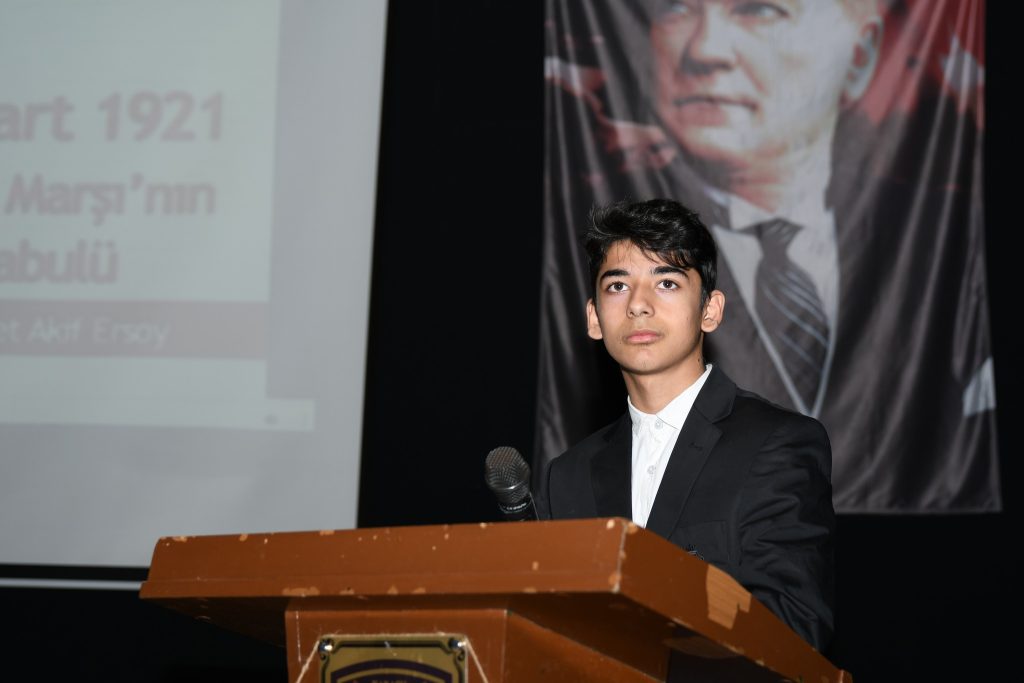 Günün anlam ve önemi belirten konuşmayı Karasu Mesleki ve Teknik Anadolu Lisesi Tarih Öğretmeni Melek TURAN yaptı. Karasu Mesleki ve Teknik Anadolu Lisesi öğrencilerinden Özgür ÖZDEMİR “İstiklal Marşımıza” adlı şiiri ve Zehra Betül KULAKSIZ “İstiklal Marşımız” adlı şiiri okudular.