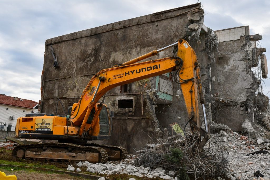 Karasu’da da, depremden çok önce başlayan hukuki süreçler tamamlandıkça, risk arz eden binaların yıkımı da gerçekleştiriliyor.