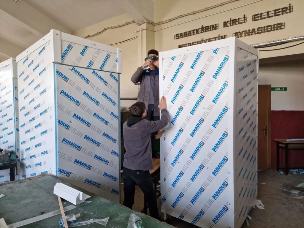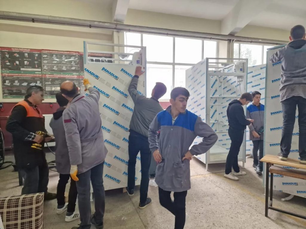 Bu süreçte, Meslek Liseleri’nin ihtiyaç duyulan malzemeleri üretmeleri de büyük memnuniyet doğuruyor. Covid- 19 sürecinde ürettiği dezenfektan ve kolonya ile göz dolduran Karasu Şehit Hasan Keleş Mesleki ve Teknik Anadolu Lisesi, deprem felâketinden sonra da hijyen malzemeleri, soba üretip, deprem bölgesine gönderen okul, bu kez de yine bir ihtiyaç için katkıda bulundu.