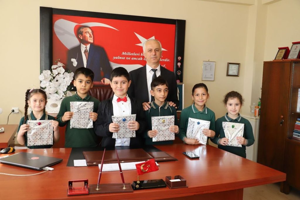 İlçe Milli Eğitim Müdürü Çetin TURHAN ve Okul Müdürü ile birlikte, 24 Nisan 2023 Pazartesi günü Kaymakam Dr. Ahmet Naci HELVACI’yı makamında ziyaret etti.