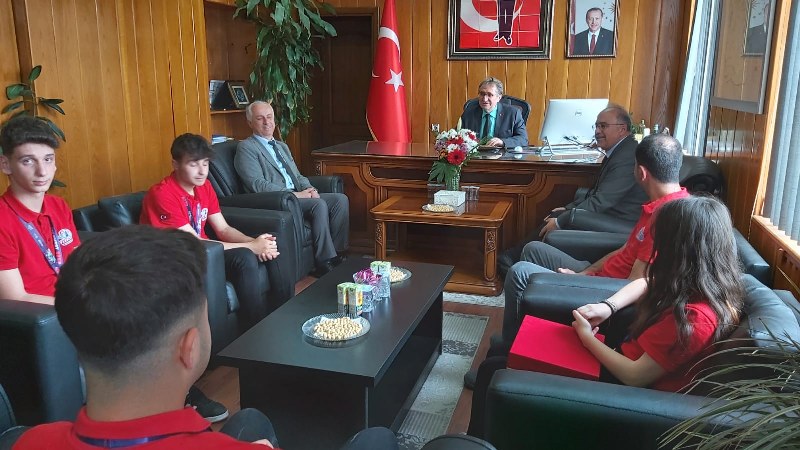 Madalyaları ve 2.lik ödülü ile ziyarete giden öğrencileri, TURHAN ve HELVACI tebrik ederek, başarılarının devamını dilediler.