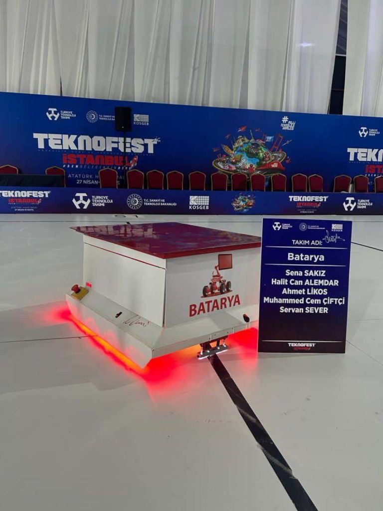 “Fabrika için lojistik veya depolarda kullanılabilecek kendine atanmış yollarda hareket edip, belirli yükleri noktadan noktaya taşıyan otonom çalışan güdümlü bir robot projesi” ile Batarya Takımı öğrencileri Muhammed Cem ÇİFTÇİ, Sena SAKIZ, Ahmet LİKOS, Halit Can ALEMDAR ve danışman öğretmenleri Servan SEVER, Karasu’yu ve Sakarya’yı temsil ederek Türkiye 2.si oldular.