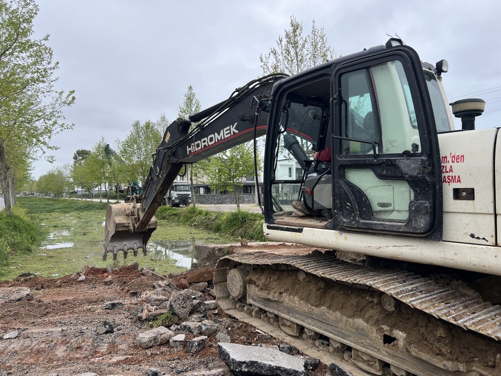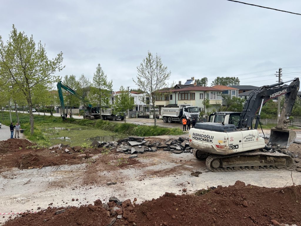 Kanal üzerindeki mevcut menfez söküm çalışmalarının ilki Mimar Sinan Caddesi’nde başladı.