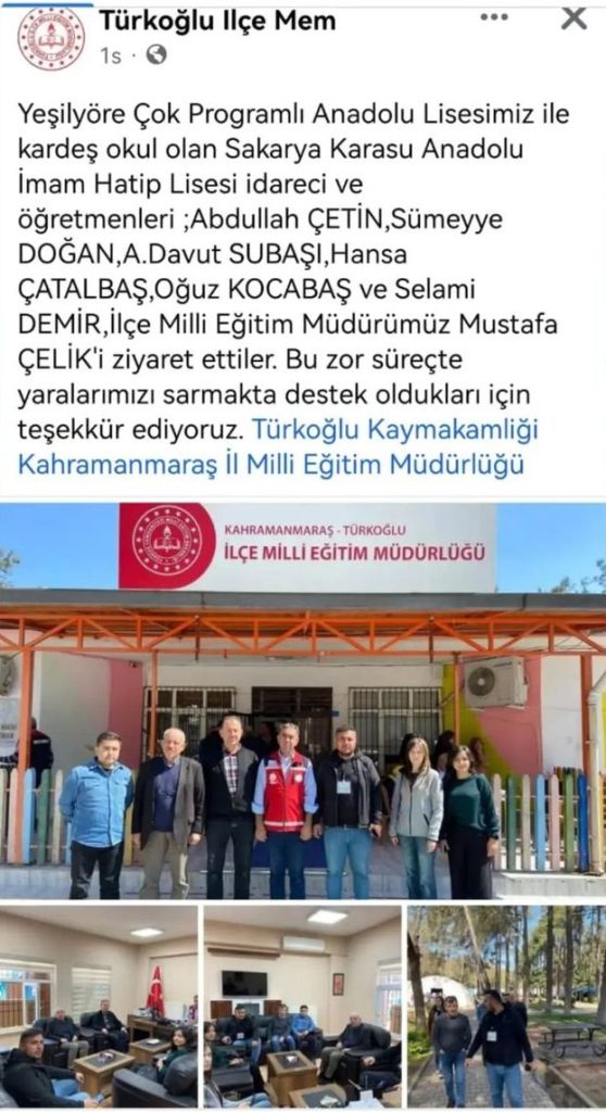 Karasu Anadolu İmam Hatip Lisesi öğretmenler,, öğrencileri ve velilerinin topladığı yardımlar, Kahramanmaraş Türkoğlu ilçesindeki Yeşilyöre Çok Programlı Anadolu Lisesi‘ne ulaştırılarak, okul yöneticilerine ve öğrencilere teslim edildi..