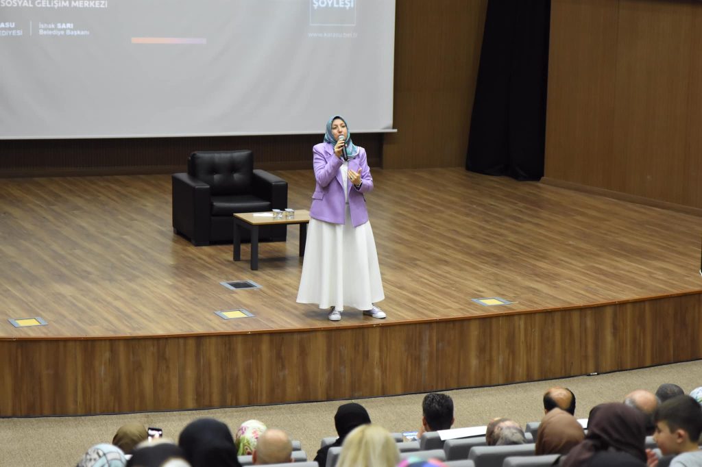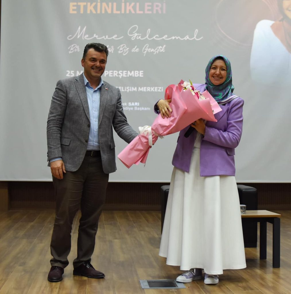 Programı başından sonuna ilgiyle izleyen Başkan SARI, program sonunda, “Farkındalık oluşturan ve çocuklarımızın eğitimiyle ilgili atlanmaması gereken detayları kendine has üslubuyla ve çarpıcı örneklerle dinleyicilerine aktaran Sayın Gülcemal’e teşekkür ediyorum. Burada bizlerle birlikte bu güzel söyleşiye kulak veren hemşerilerime de ayrıca teşekkür ediyorum.” diyerek Merve GÜLCEMAL’e çiçek takdim etti.