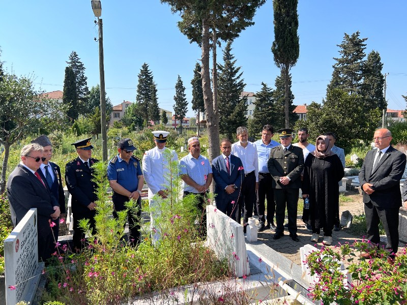 Kaymakamlık Makamı’ndaki tebrikleşmenin ardından, saat: 10.45’de, Karasu Merkez Mezarlığı’nda bulunan şehit kabirleri ziyaret edildi.