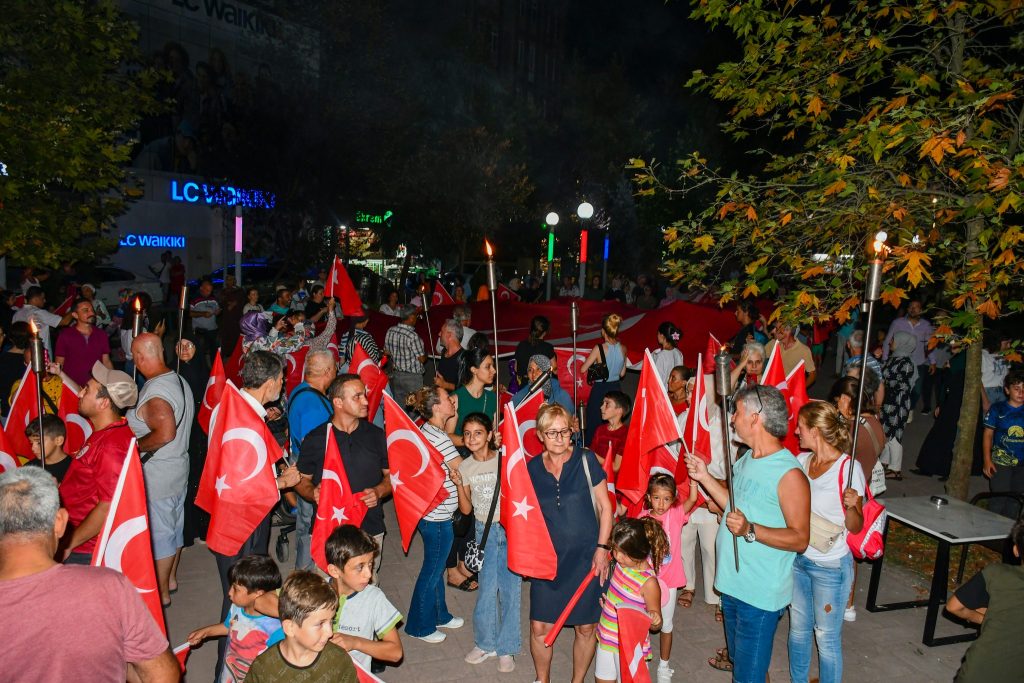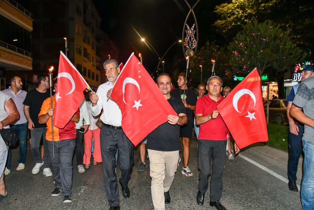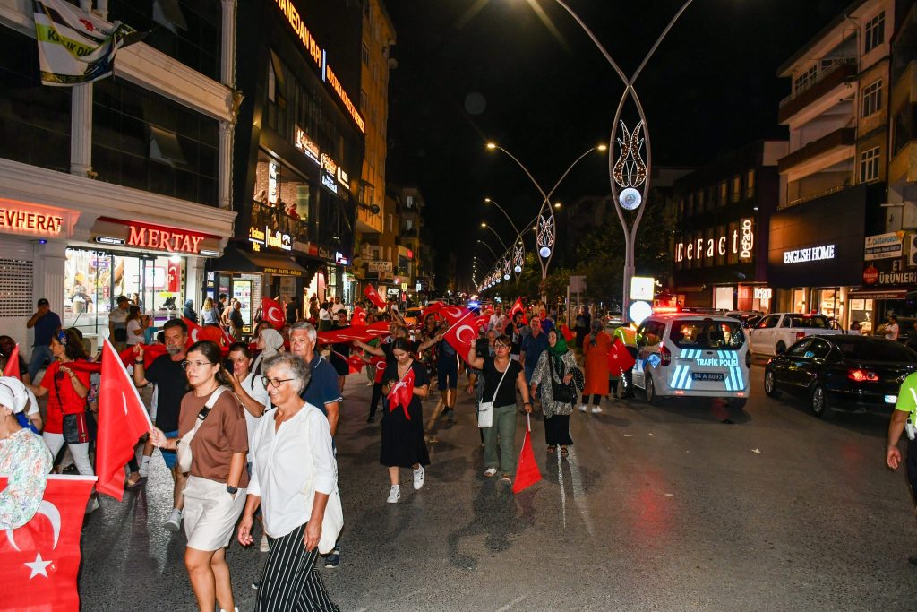 Karasu’daki Zafer Bayramı kutlamaları, akşam saatlerinde, Hükümet Konağı önünden, meşaleler ve marşlar eşliğinde başlayarak Başbuğ Alparslan TÜRKEŞ Parkı’nda, saygı duruşu ve İstiklal Marşı okunması ile son bulan “Fener Alayı” ile devam etti.