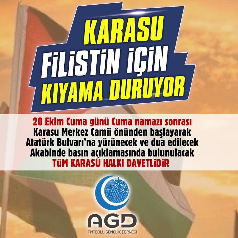 Anadolu Gençlik Derneği (AGD) Sakarya Şubesi ve Karasu Temsilciliği önderliğinde düzenlenen protesto eyleminde, Karasu Merkez Çarşılı Camii‘nde kılınan Cuma Namazı sonrası başlayan protesto eylemi, camii önünden Bulvar‘a pankartlar taşınarak, sloganlar ve tekbirlerle yürünerek başladı.
