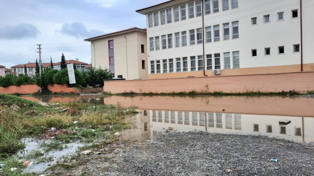 Bazı okulların yollarının suyla kaplı olduğu, öğrencilerin geçmekte zorlandığı görüldü.