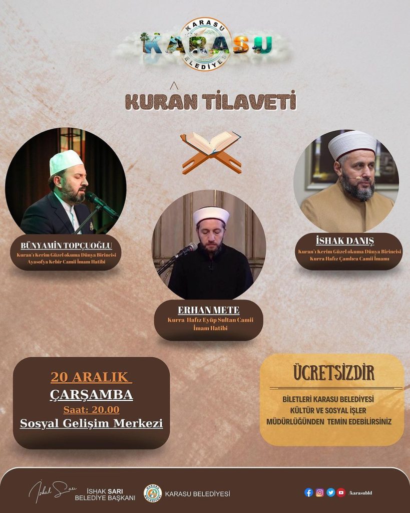 Karasu Belediyesi’nin Aralık ayındaki diğer programlarını, aşağıdaki görsellerden takip edebilirsiniz.