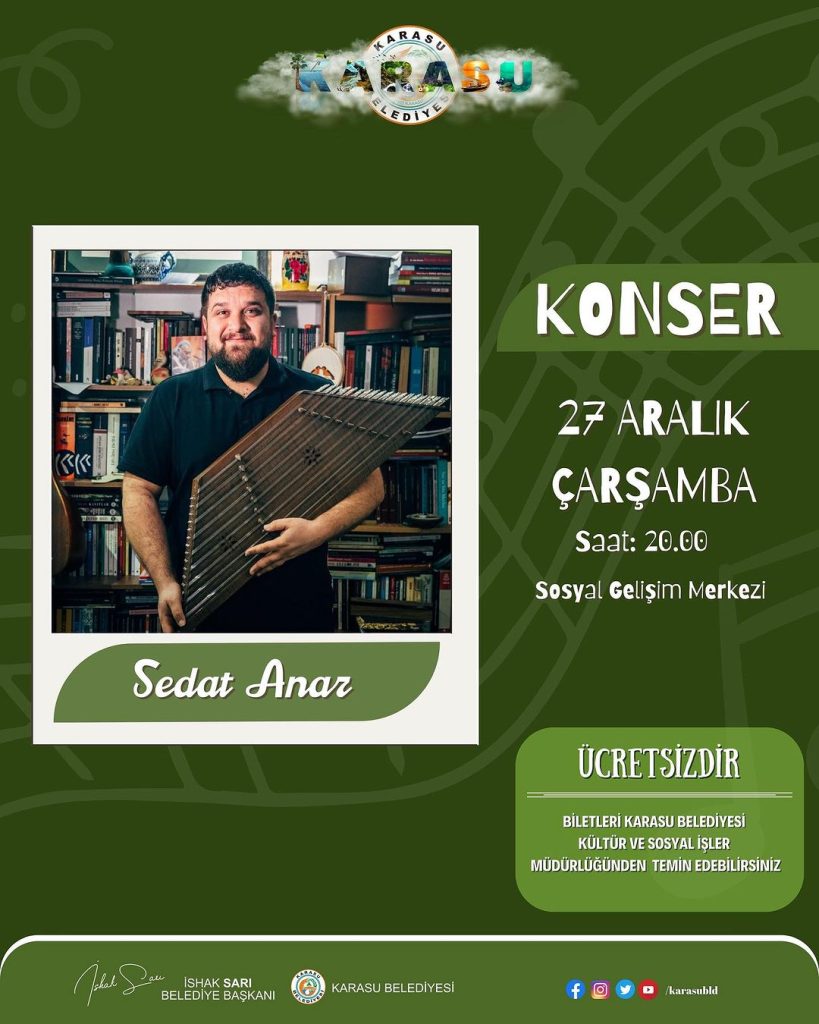 “Karasu Belediyesi olarak ilçemizin saygıdeğer sakinlerini sanat ve kültür alanında farklı ve kaliteli içeriklerle buluşturmayı hedeflediğimiz Kültür Sanat Sezonu etkinliklerimizden birini daha gerçekleştirmiş olmaktan mutluluk duyuyoruz. Belediye Başkanımız Sn. İshak SARI’nın sosyal ve kültürel belediyeciliğe büyük önem verdiği, bu alanın asla ihmal edilmemesi gerektiğiyle ilgili düşünceleri ve uygulamaları, hemşerilerimizin malumudur. Bizler çizgimizi imkanlarımız dahilinde muhafaza edeceğiz ve Karasu’yu sevilen, değerli isimler ve etkinliklerle buluşturacağız inşallah.” ifadelerini kullandı.