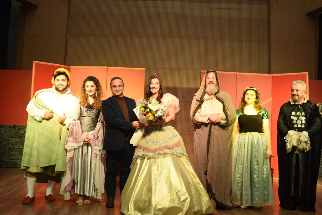 Oyun sonrasında oyunculara çiçek takdim eden KARAKAŞ başarılı oyunculuklarından dolayı tüm ekibe ve katılan herkese teşekkür etti.