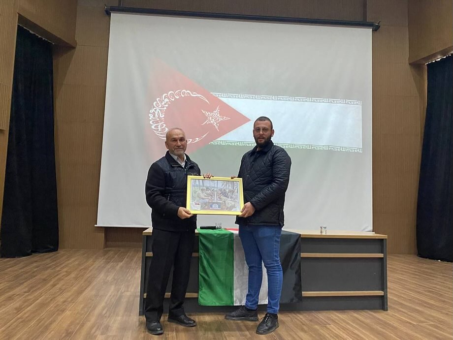 Konuşmanın ardından, sinevizyon gösterimi ve devamında, sembolik olarak Ebu Ubeyde’nin canlandırıldığı ve konuşmalarından birisinin Türkçe olarak seslendirildiği duygusal bir sunum ile program sürdü.