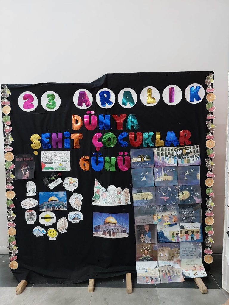 Etkinliler kapsamında, “23 Aralık Dünya Şehit Çocuklar Günü”nde Karasu Sosyal Gelişim Merkezi öğrencileri, Filistinli çocuklar için anma etkinliği düzenledi.