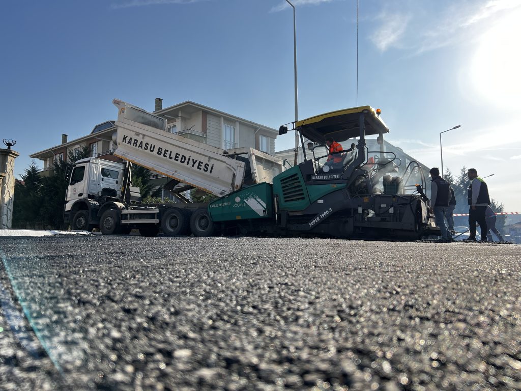 Bu kapsamda Yol Bakım ve Altyapı Koordinasyon Dairesi Başkanlığı ekipleri, Karasu Mimar Sinan Caddesi’nde sıcak asfalt çalışmalarına başladı.